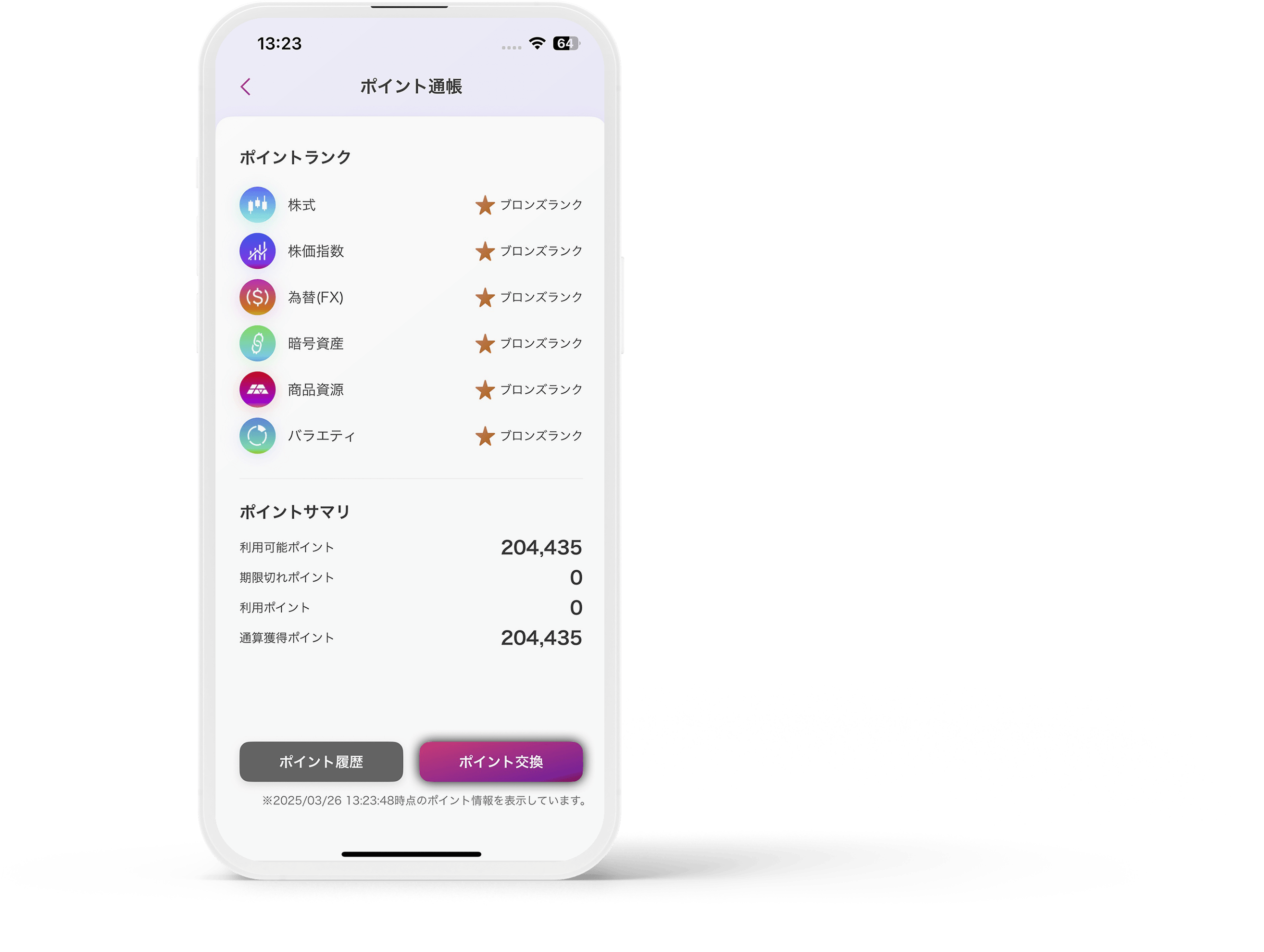 - PCでは、HPにログイン後「マイページ」の「ポイント通帳」からポイントの確認や交換が行えます。