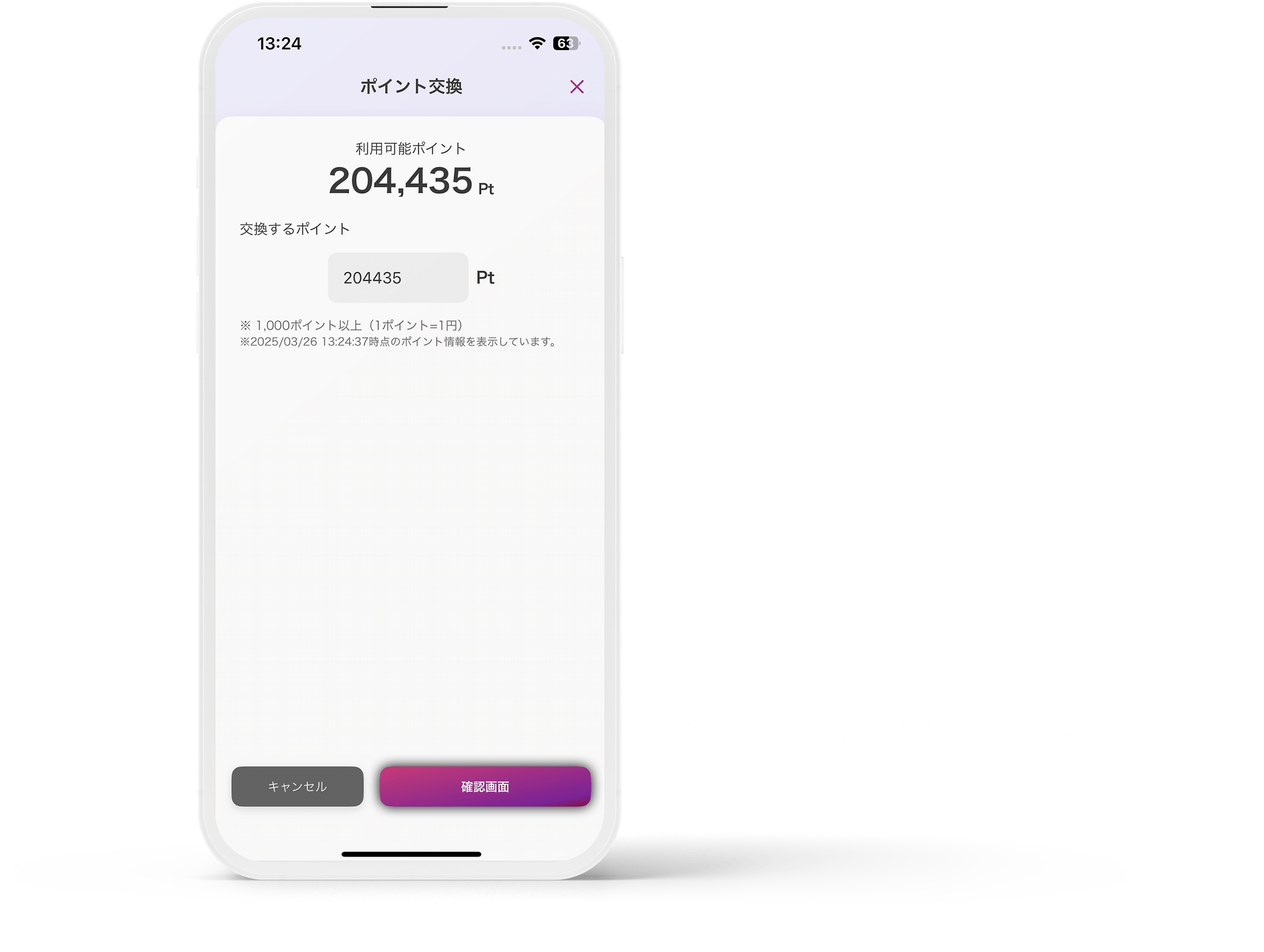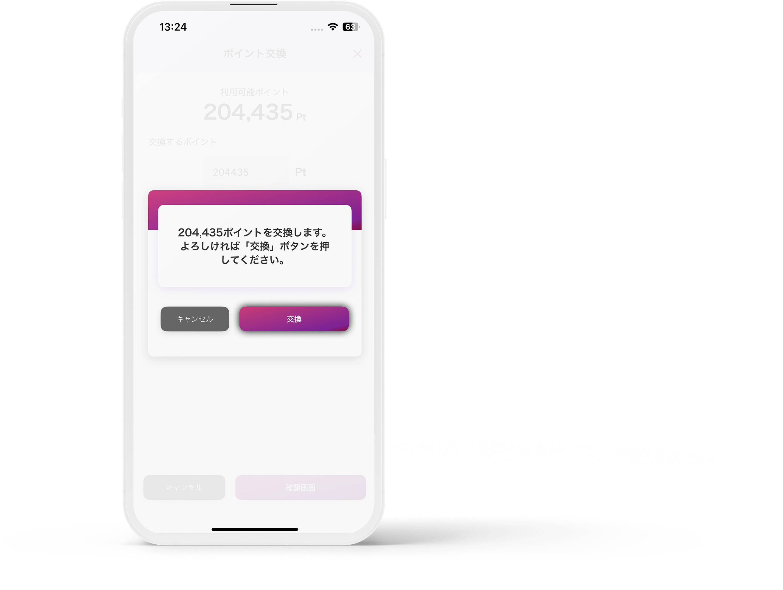 4内容を確認し、[交換]をタップすると、ポイント交換が完了します。