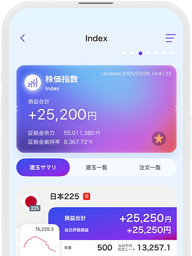 世界の主要株価指数の中から厳選された8銘柄の株価指数がお取引いただけます。