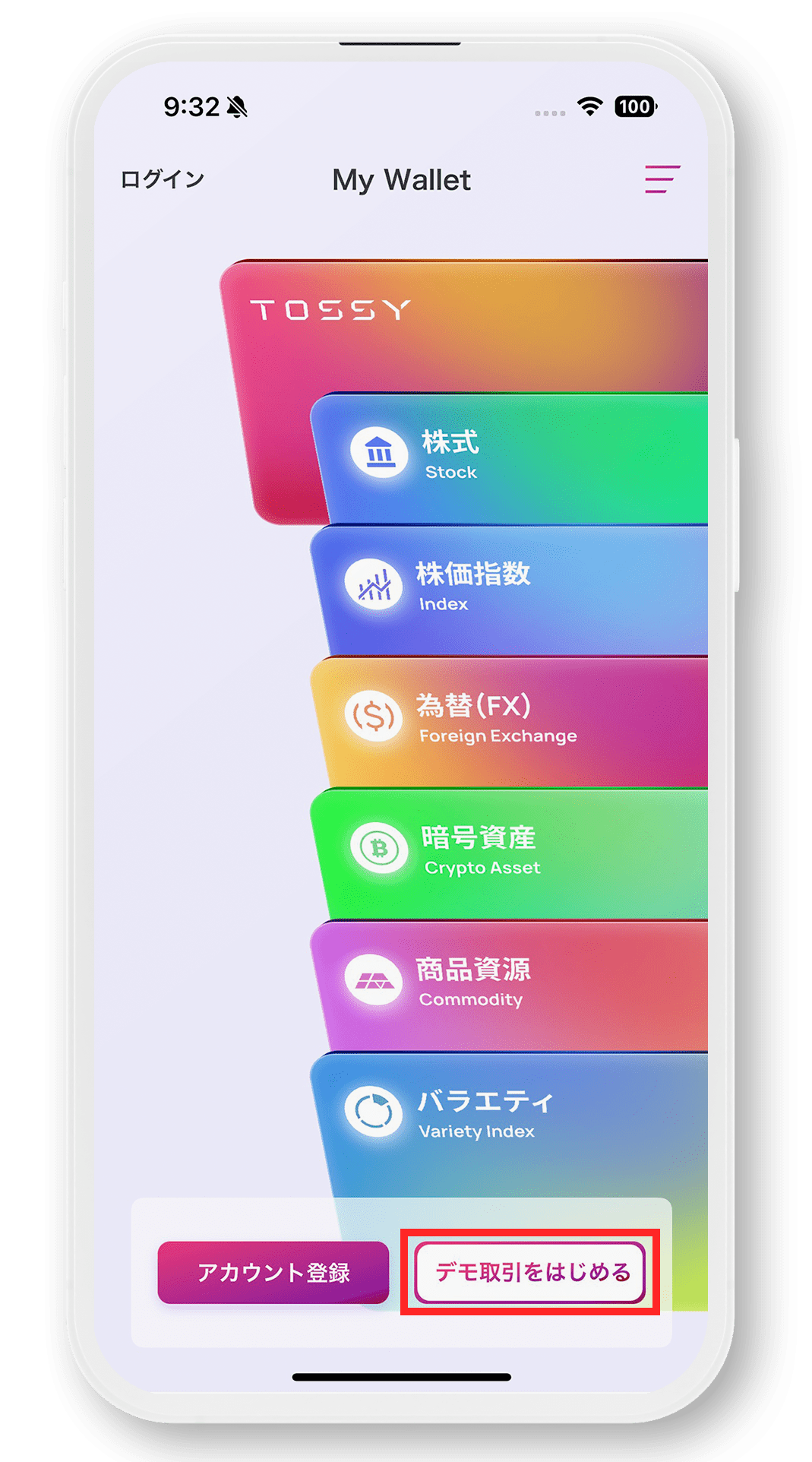 - ウルトラ投資アプリTOSSY デモ取引