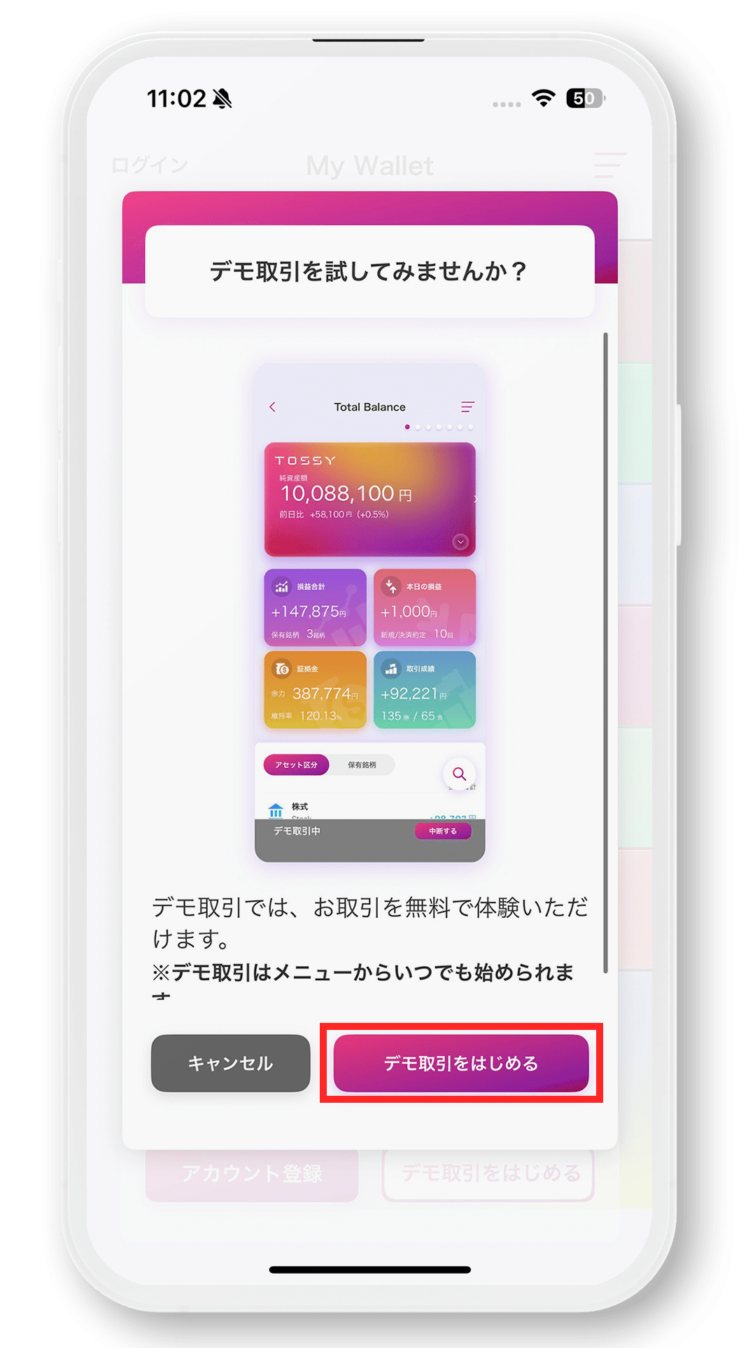 ウルトラ投資アプリTOSSY デモ取引