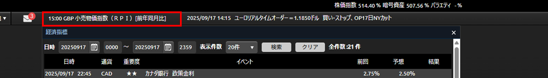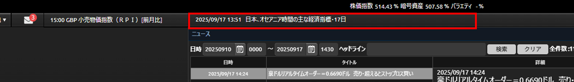 経済指標やニュースの情報は、取引ツール内で確認できます。